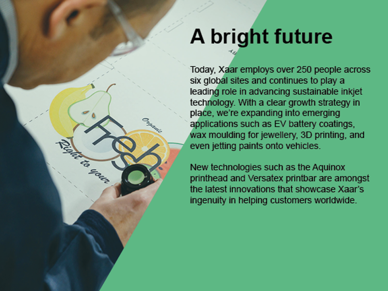 Kieran: A key moment in the company's history that stands out to me is how we've responded to changes in market landscapes by driving growth and diversity across both market sectors and geographies. This has been pivotal in positioning Xaar as a market leader in both technology and capability.